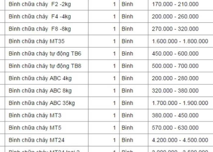 Giá bình cứu hỏa hiện nay như thế nào? Nếu bạn muốn biết chính xác