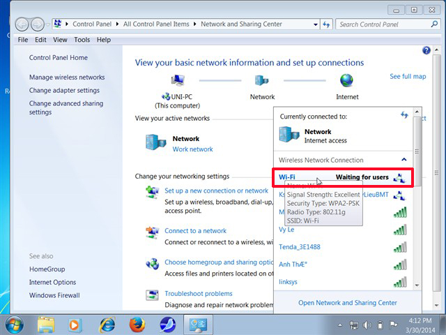 1.1 Hướng dẫn chia sẻ wifi bằng Network and Sharing Center